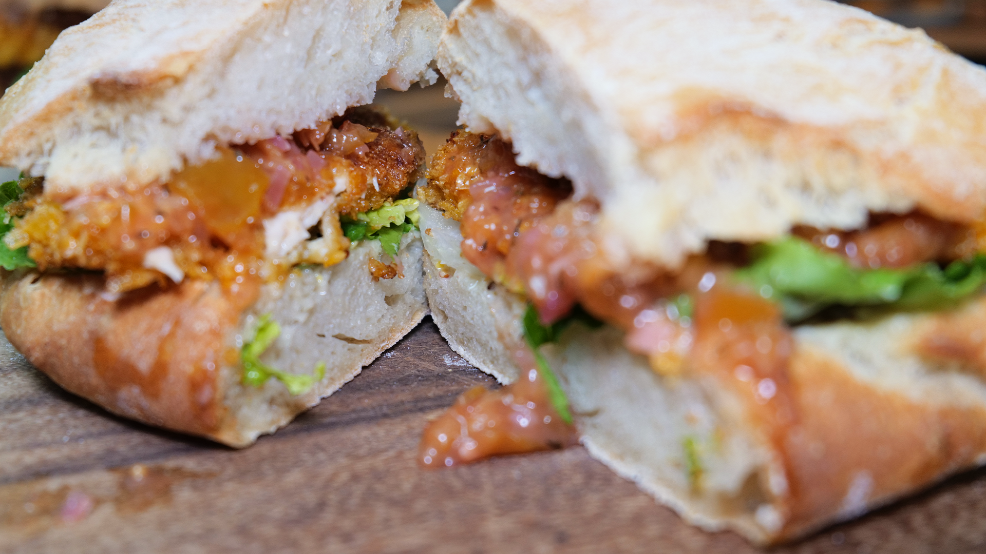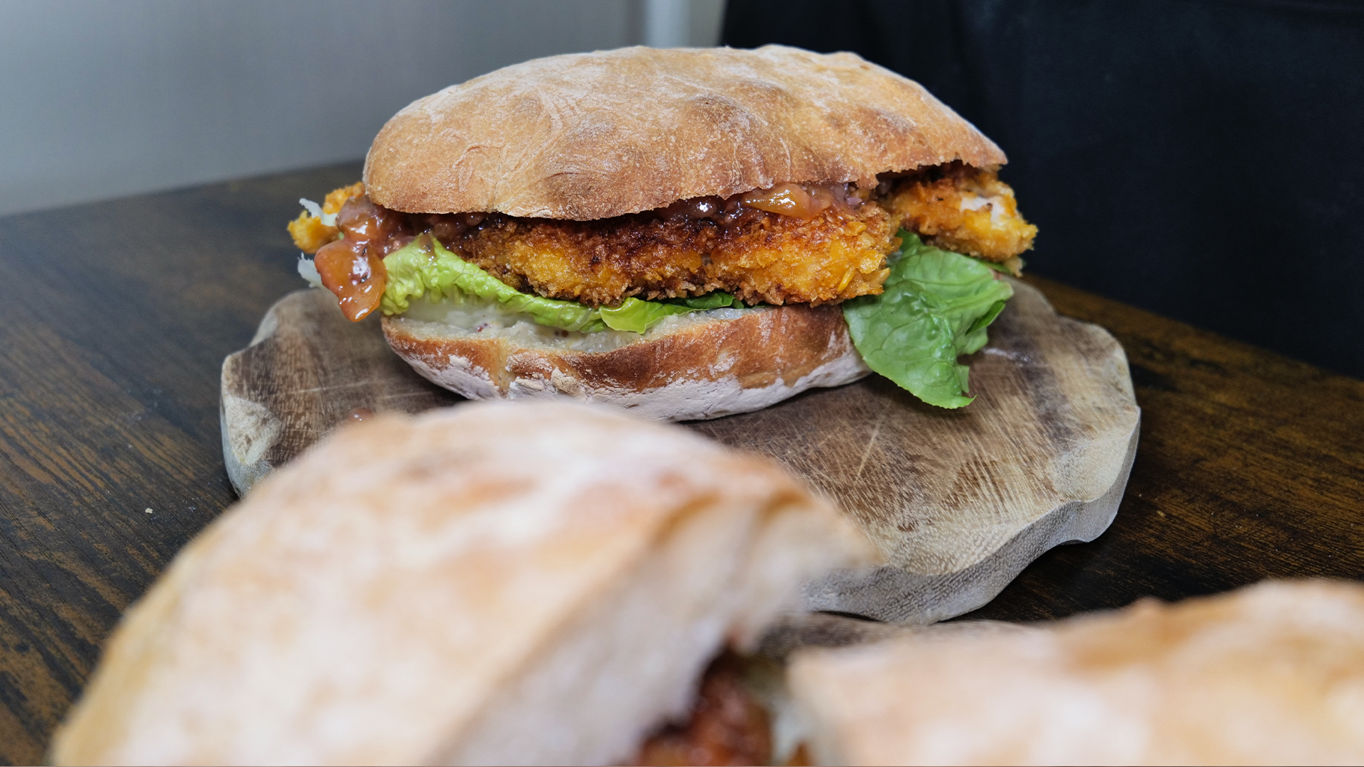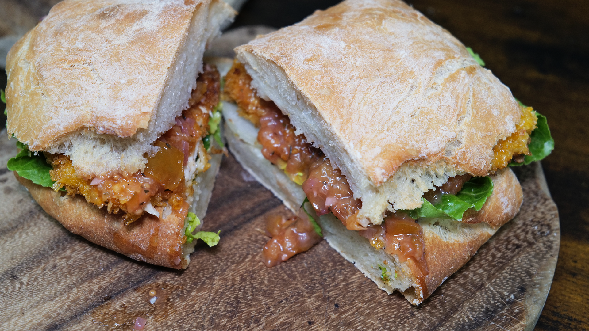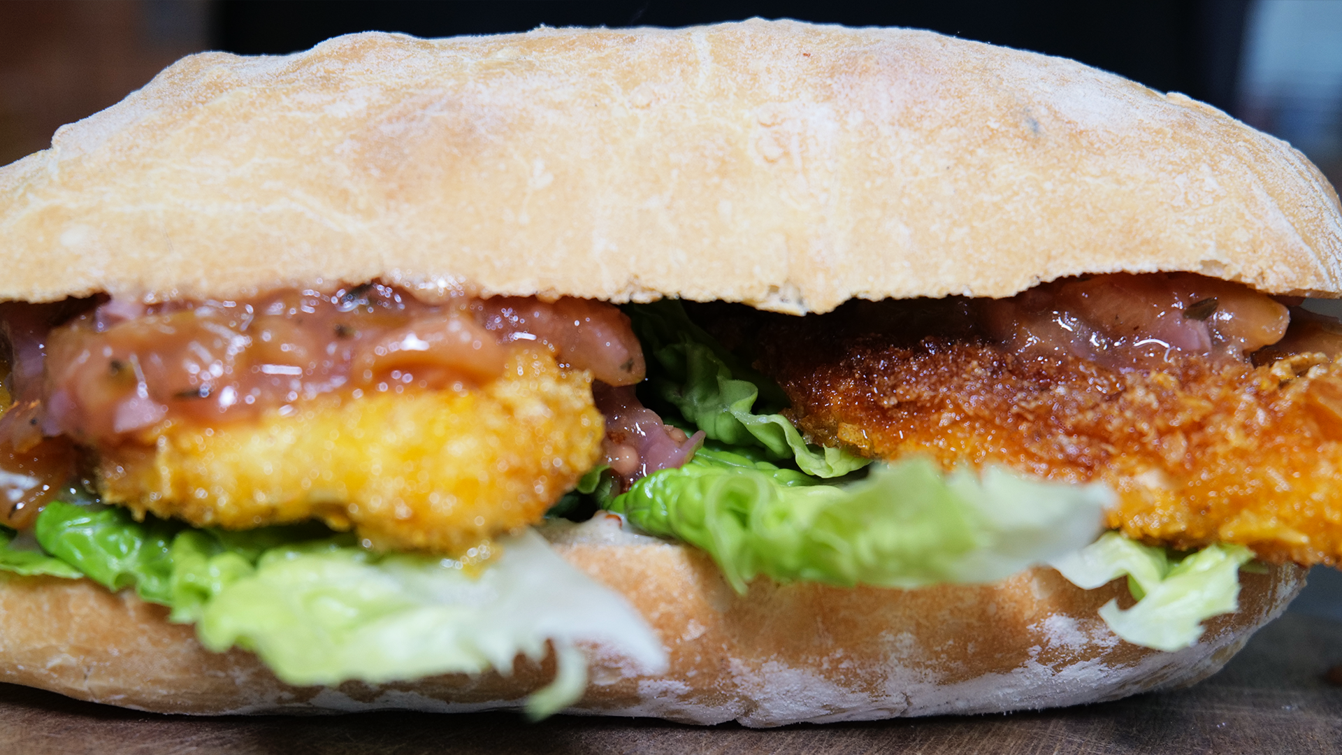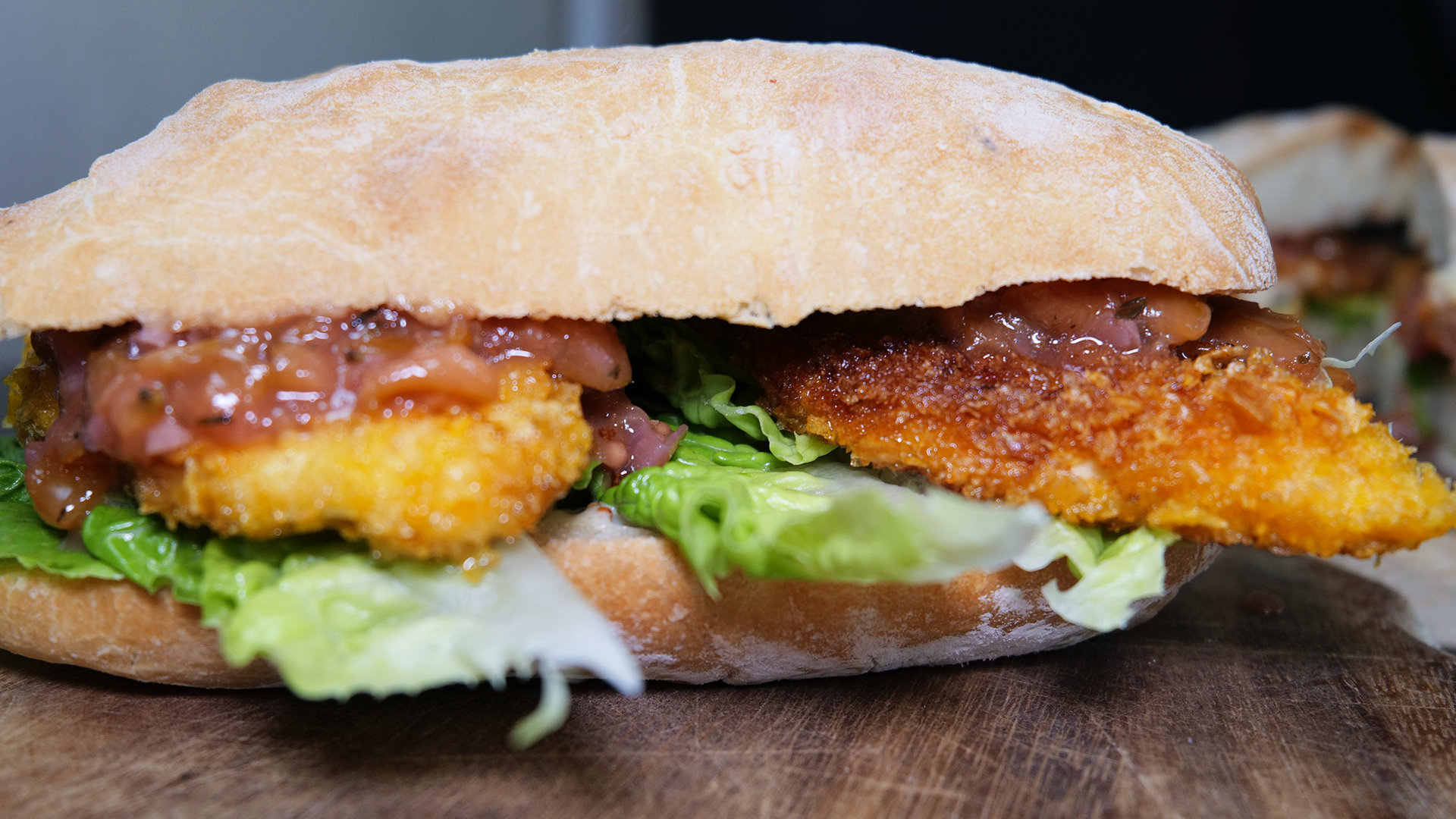 Chicken-Schnitzel-Burger mit Mirabellen-Chutney & Crunch-Panade