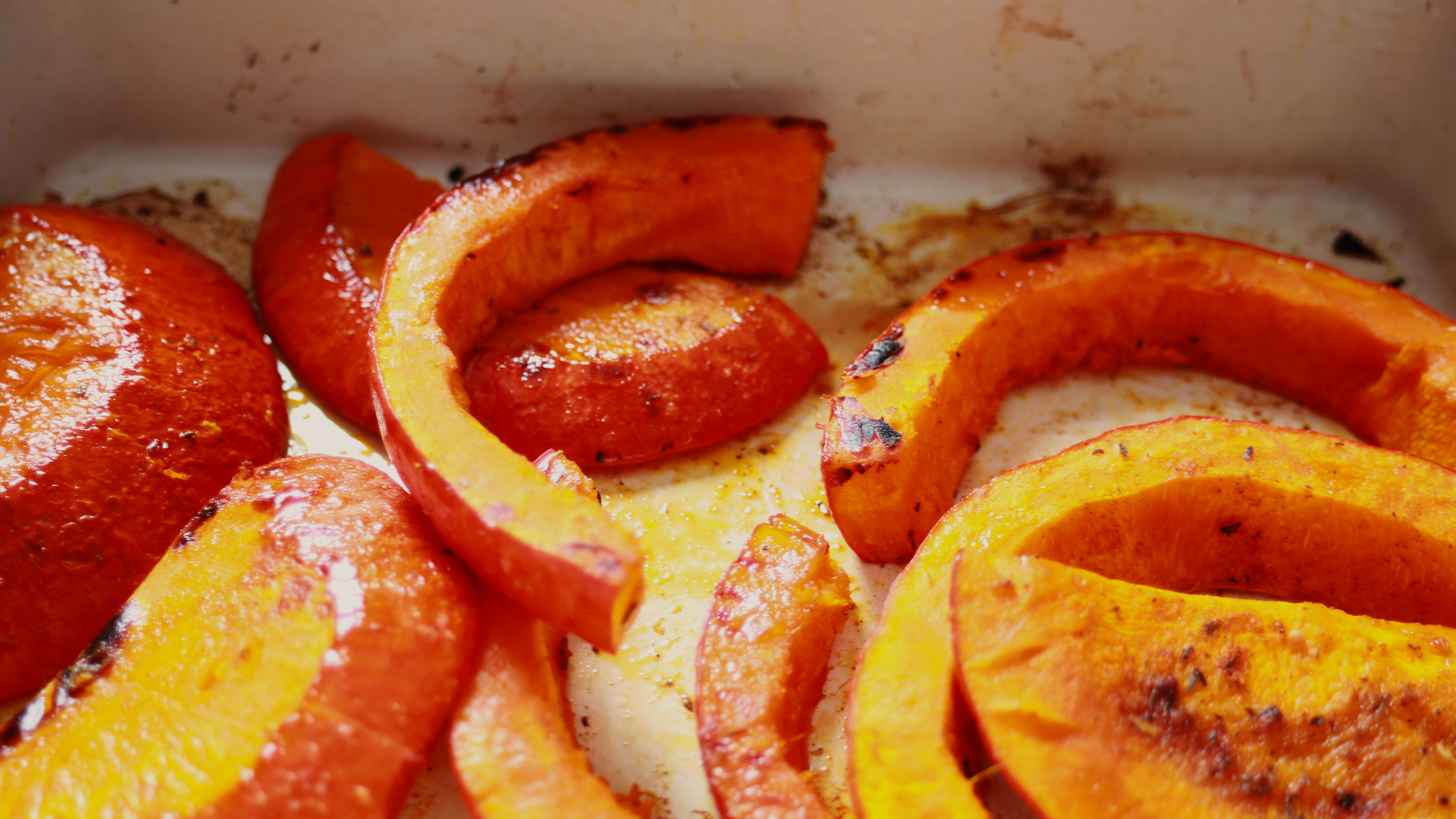 Dazu gibt es gerösteten Hokkaido aus dem Pizzaofen