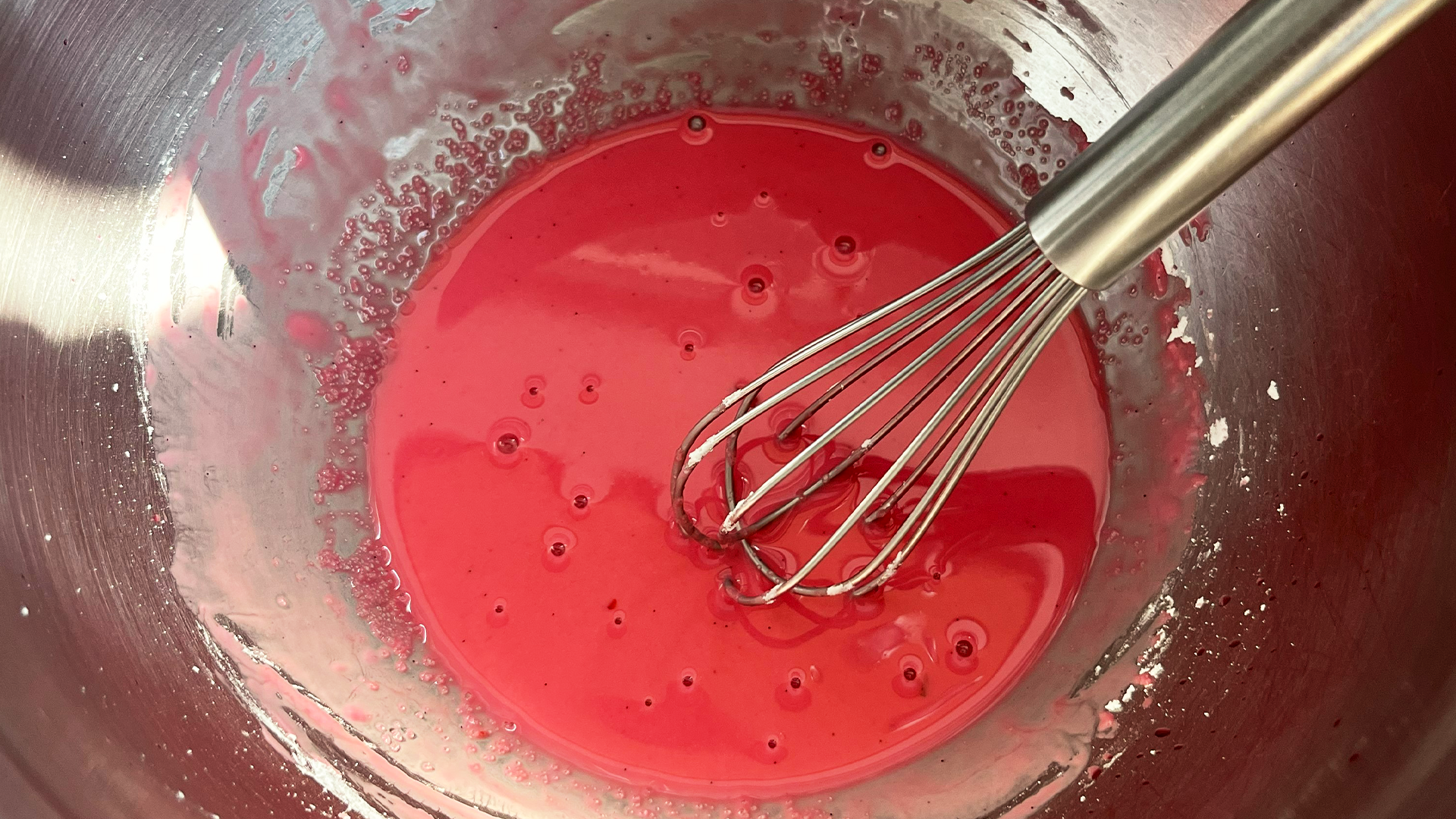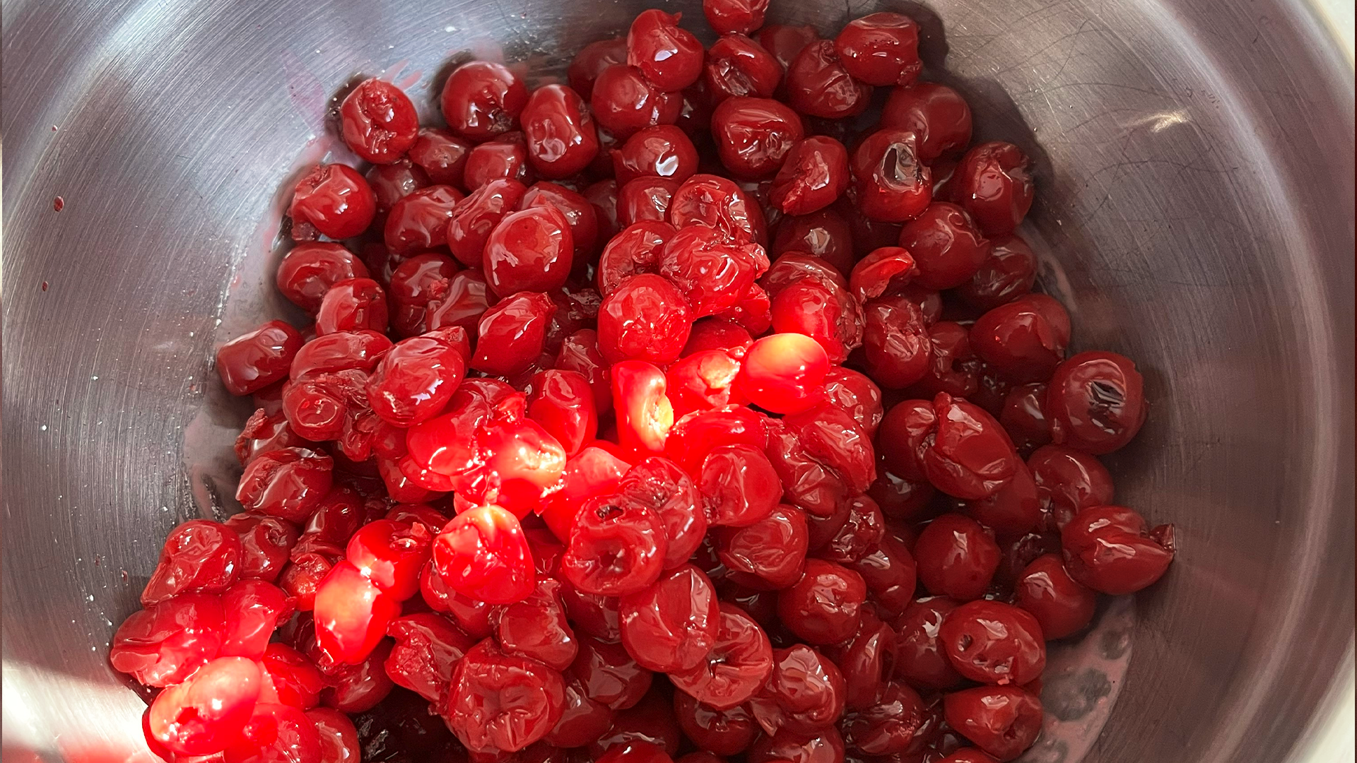 1. Rühre die Speisestärke in dem verbliebenen Likör von den Kirschen an, bis sie sich vollständig aufgelöst hat.