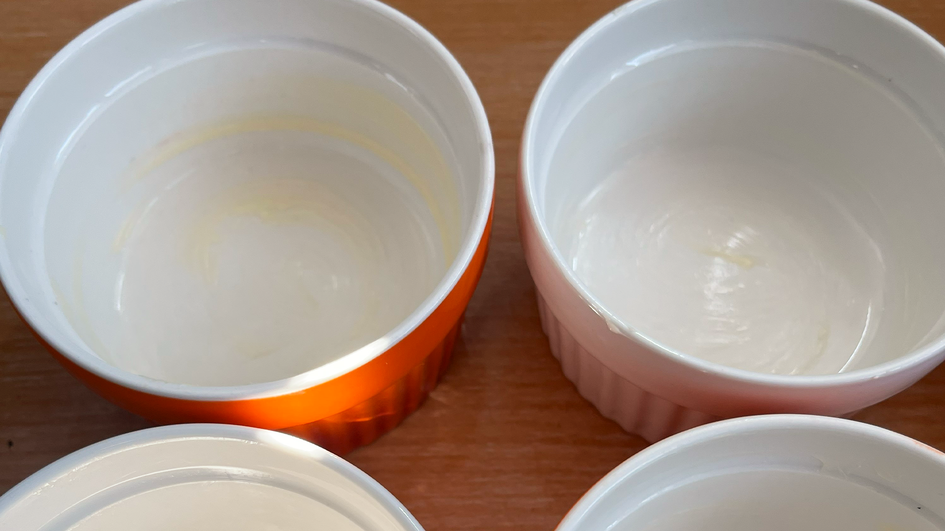 2. Vermische diese Flüssigkeit dann mit den abgetropften Kirschen und verteile die Füllung gleichmäßig auf 10 Soufflé-Förmchen.