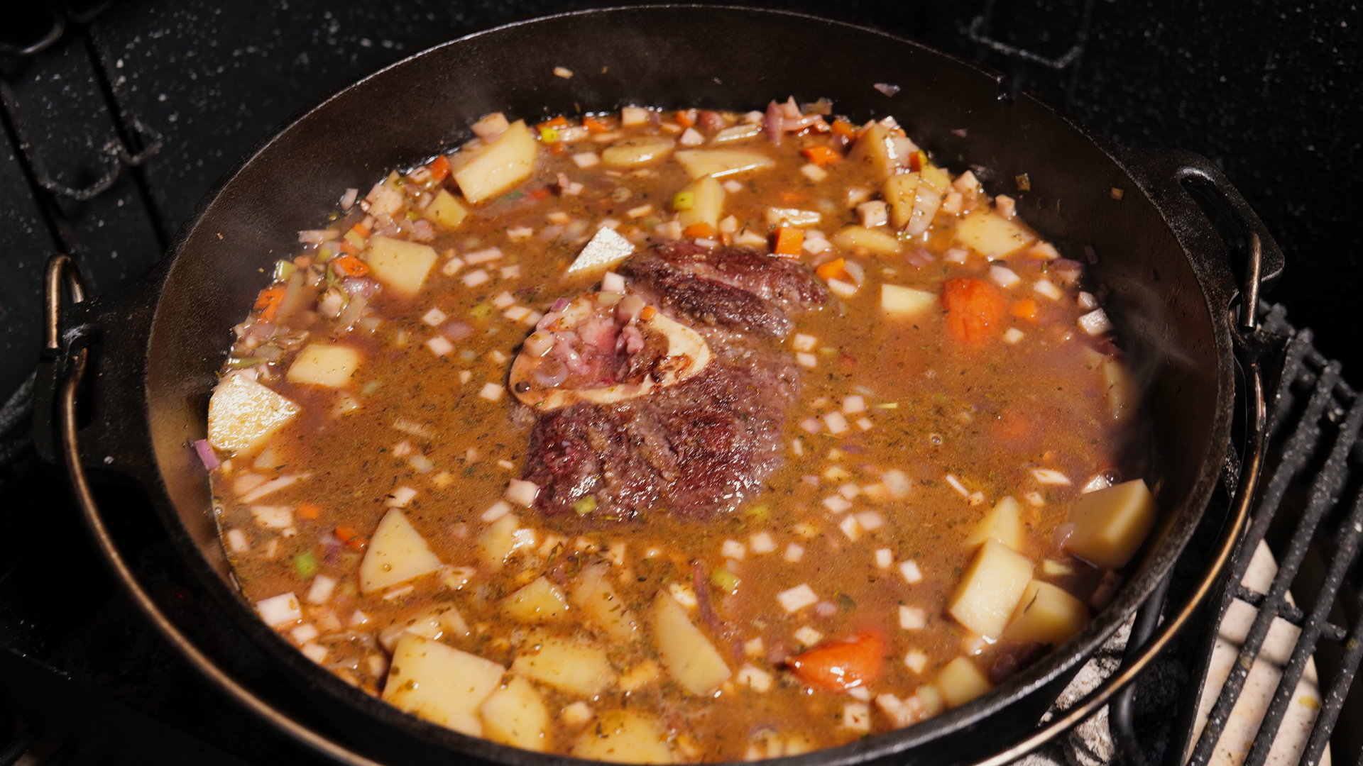 Die kräftige Beinscheibe, würzige Cabanossi und ein Schuss Rot- und Portwein sorgen für Tiefe und ein samtiges Aroma.