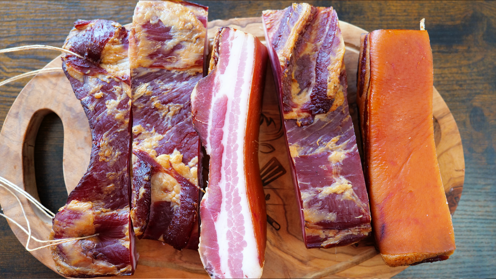 Nach dem Pökeln wird unser Bacon 2,5 Mal über aromatischen Kirschholzspänen kalt geräuchert. Das verleiht ihm eine wunderbare Rauchnote, die perfekt mit den mediterranen Aromen harmoniert.