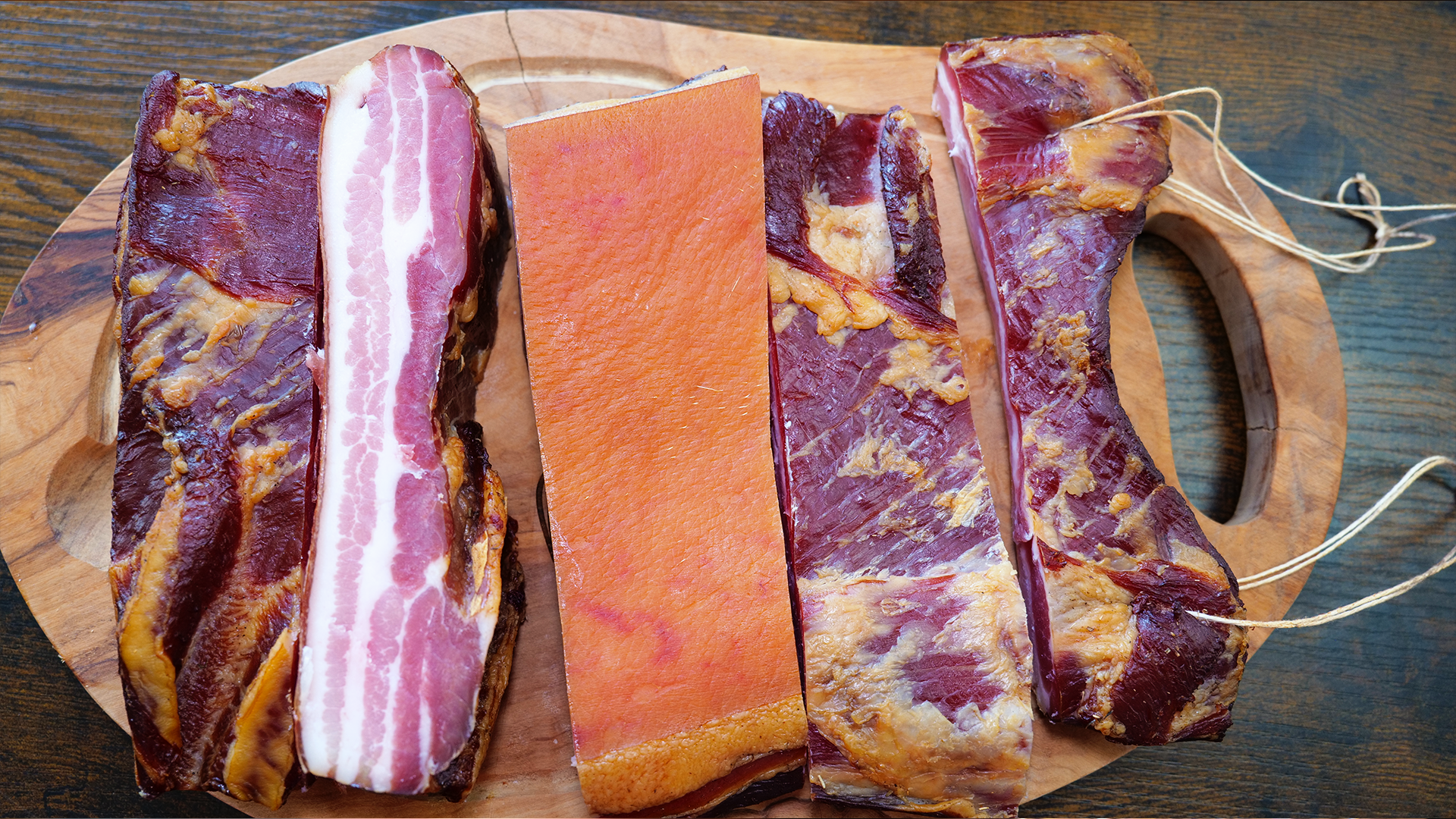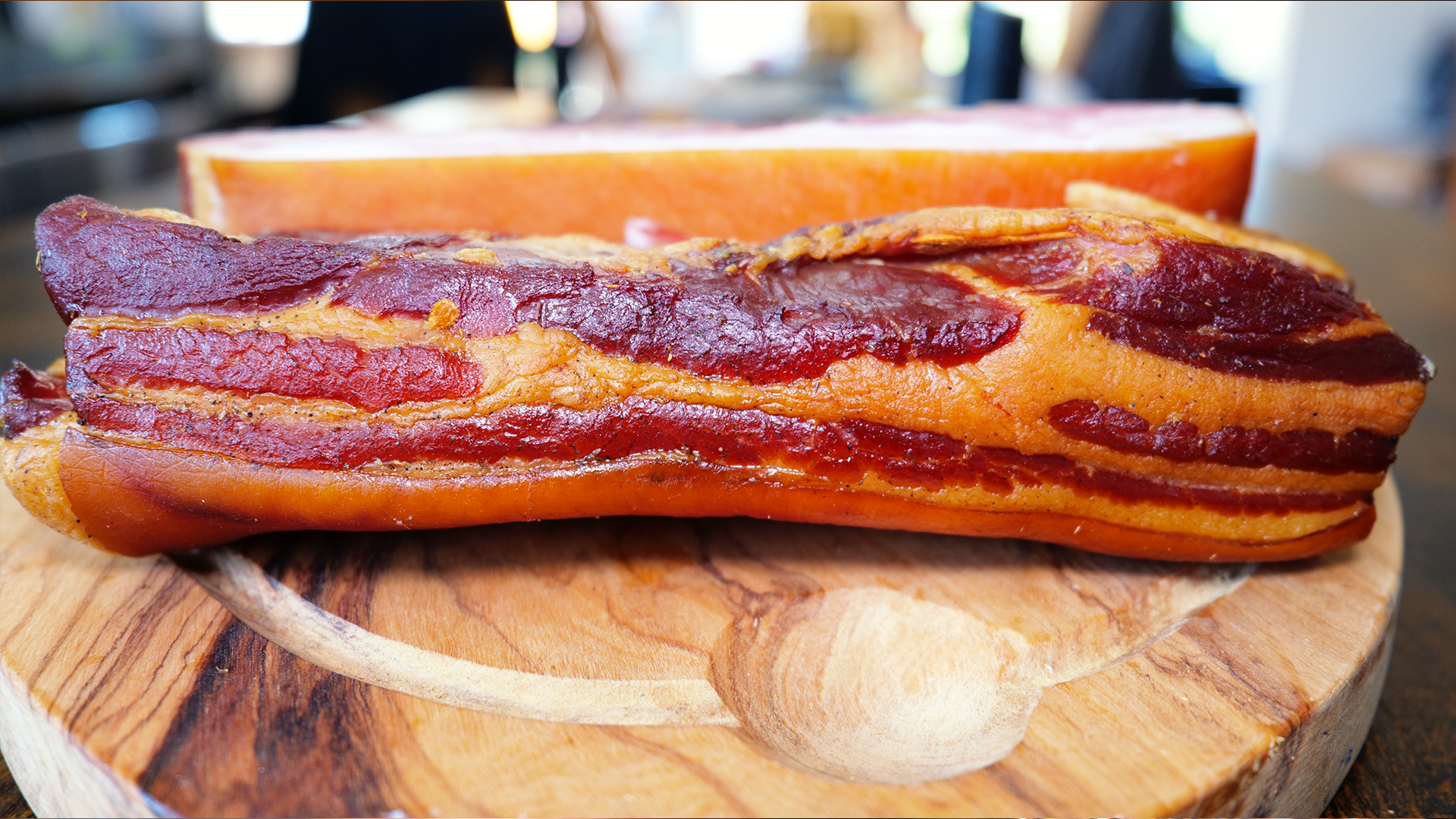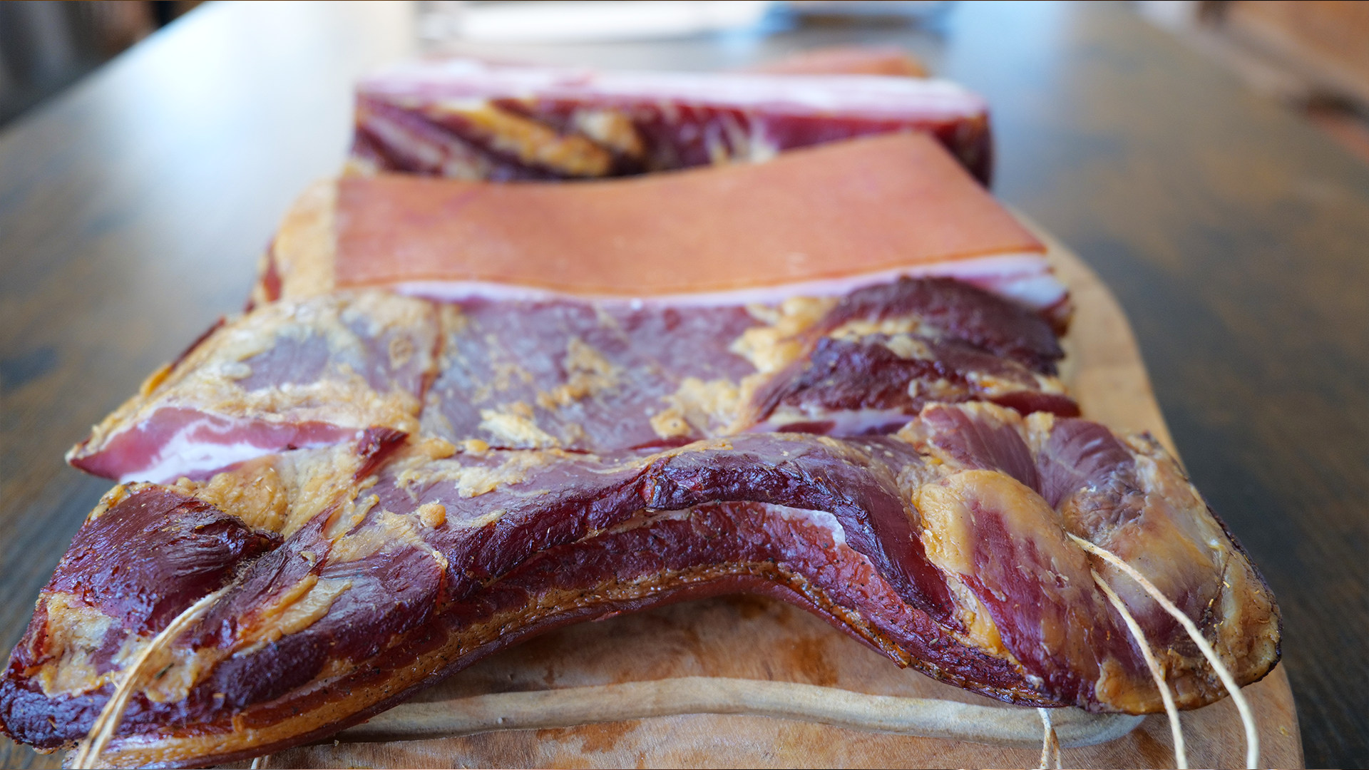 Und als besonderes Highlight: Unser Bacon durfte 4 Tage ganz entspannt in der Grillhütte an der frischen Luft reifen. So bekommt er sein volles Aroma und eine perfekte Textur.