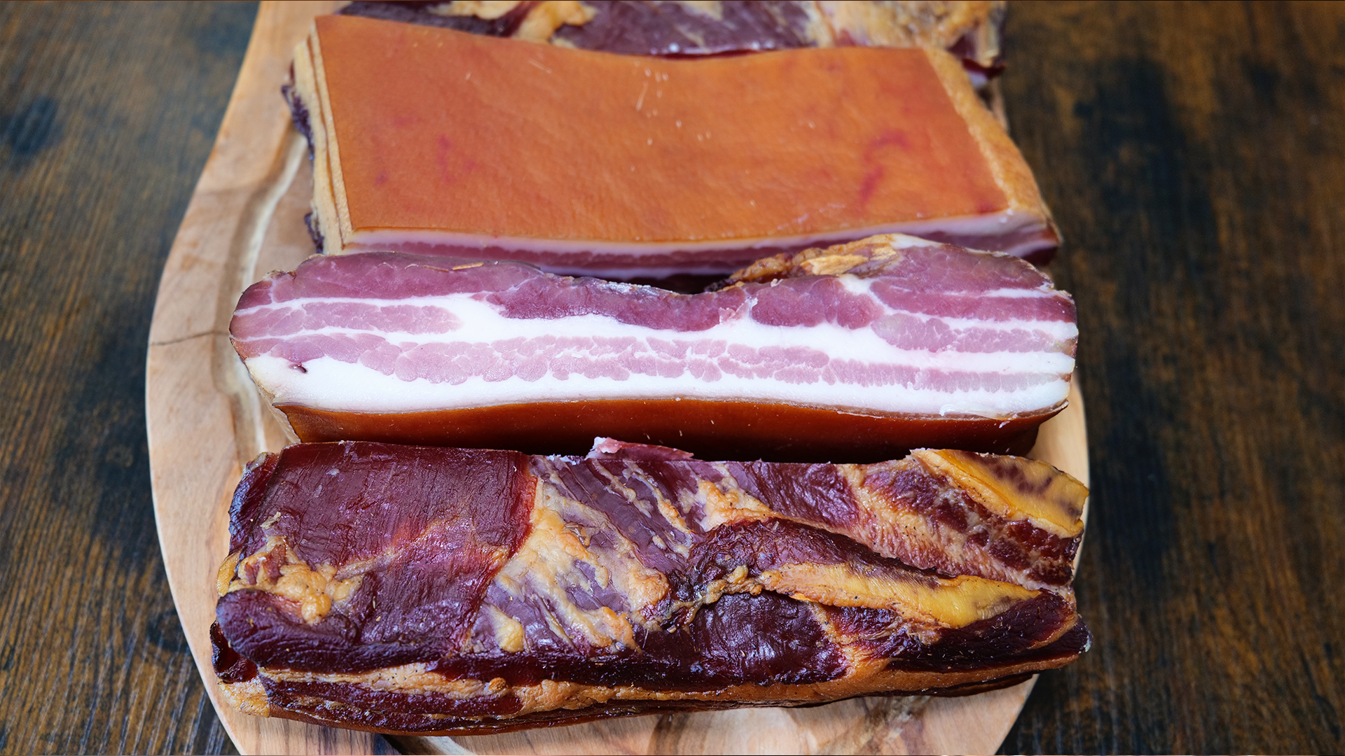 Wir verpassen dem Bauchspeck ein besonderes mediterranes Aroma, indem wir ihn nicht nur trocken pökeln, sondern dabei auch mit frischem Bärlauch, sonnengetrockneten Tomaten und feinen Zitronenzesten veredeln. Diese Kombination sorgt für eine unvergleichliche Geschmacksdimension, die euch begeistern wird!