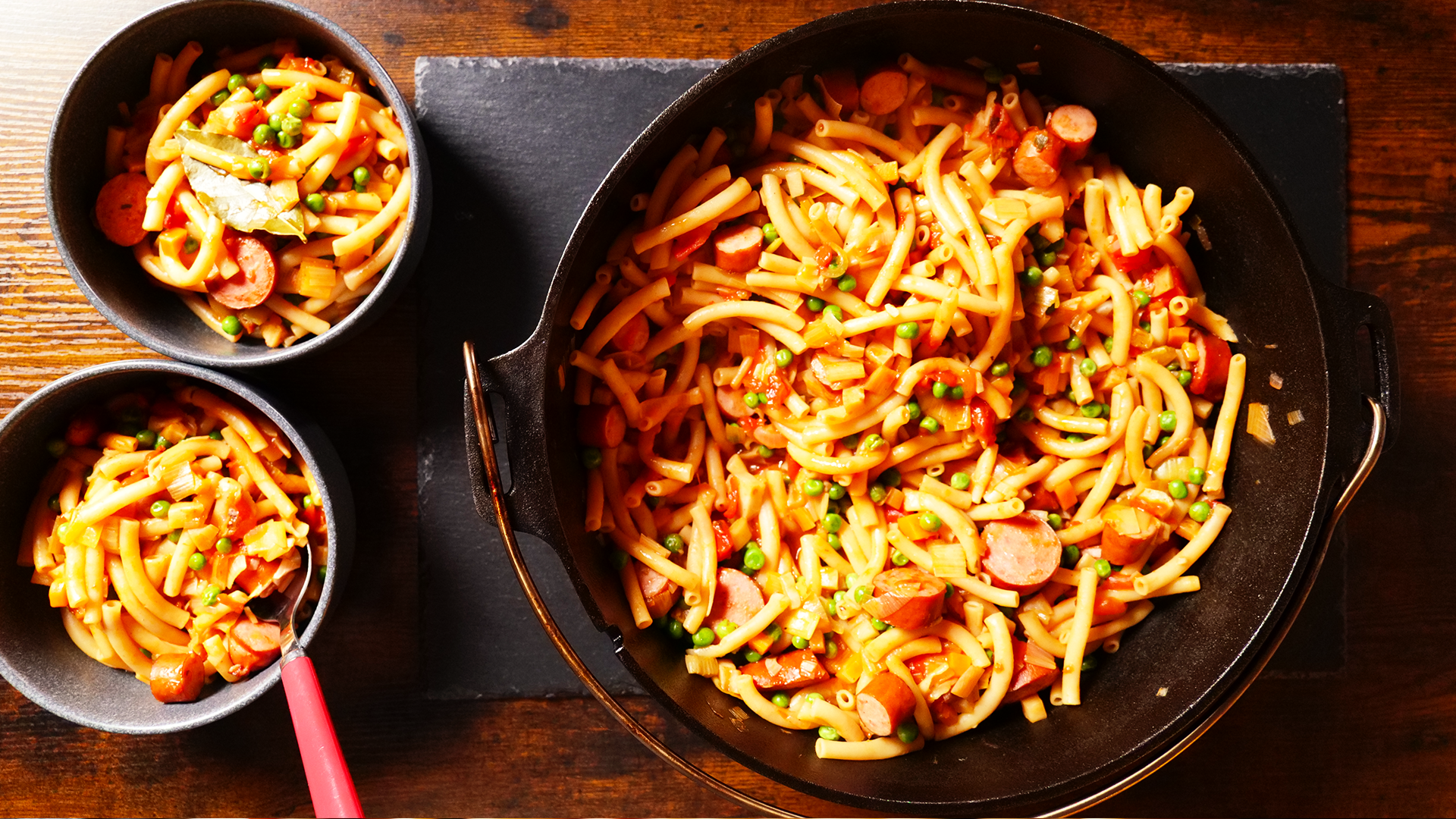 One Pot Nudeleintopf mit Cabanossi & Erbsen