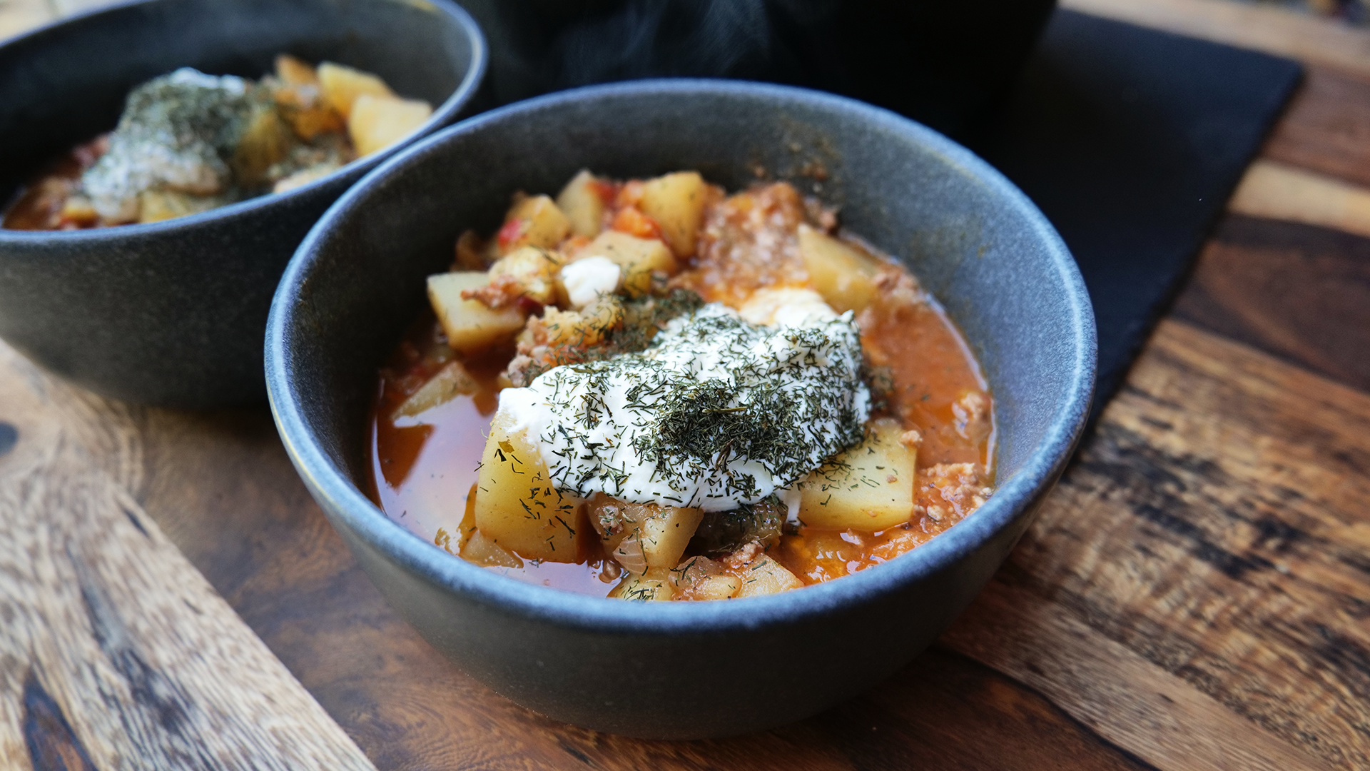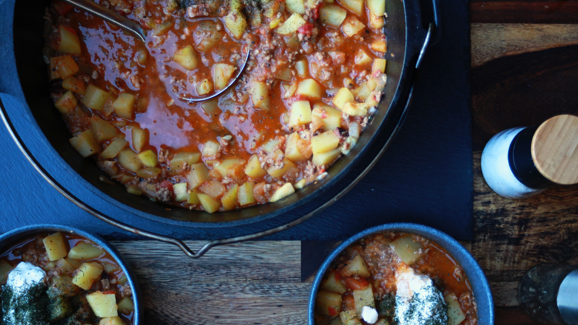 Schmorgurken sind ein echter Klassiker der Hausmannskost. In dieser deftigen Variante treffen Hackfleisch, Speck, Kartoffeln, Gurken und Äpfel aufeinander und ergeben einen herzhaften Eintopf, der nach Kindheit und Heimat schmeckt. Mit einem Schuss Sahne wird das Gericht besonders cremig, und für alle, die Abwechslung mögen, sorgt Jörchels Twist: frische Zucchini. Einfach gemacht, sättigend und perfekt für die ganze Familie.