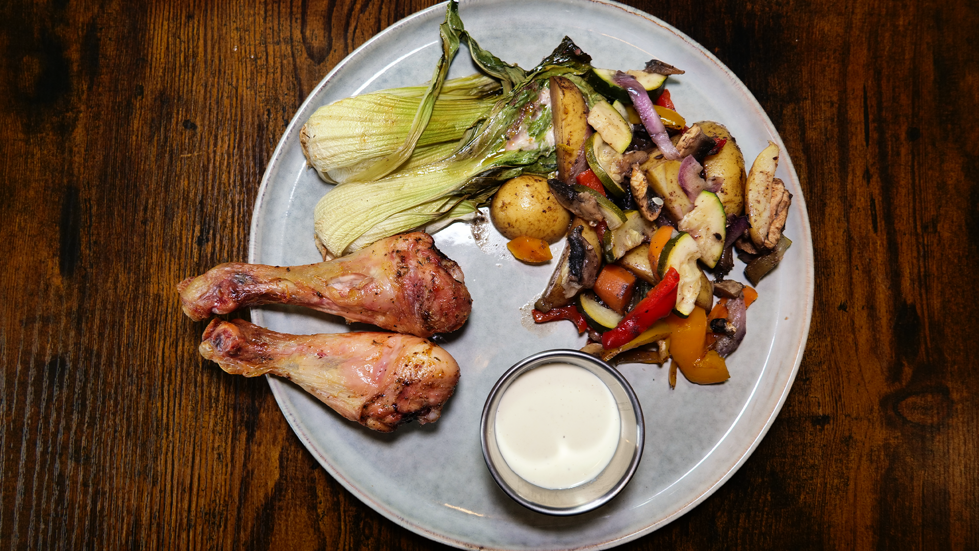 Für die Wittlager White Sauce werden Mayonnaise, Senf, Joghurt, etwas Buttermilch, Worcester Sauce, gerösteter Knoblauch sowie Salz und Pfeffer in einer Schüssel glattgerührt. Die Sauce anschließend kühl stellen, bis alles servierbereit ist.