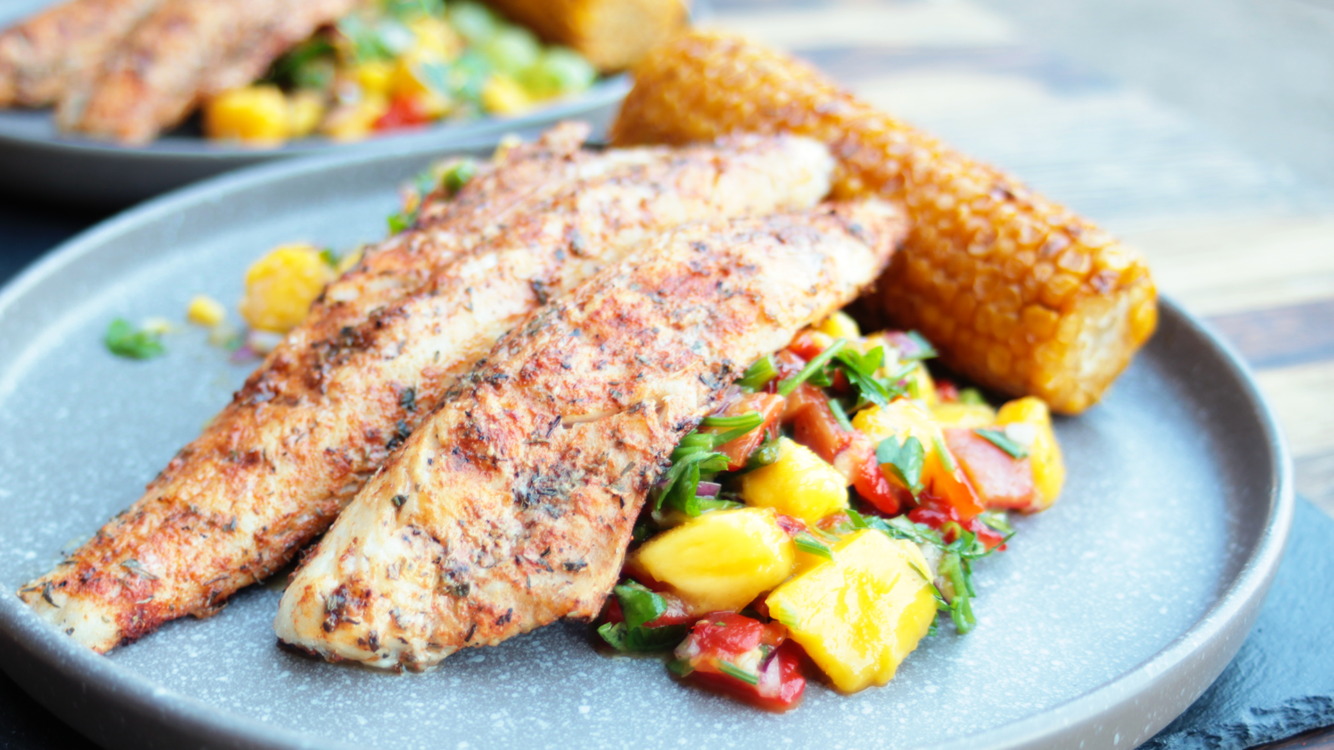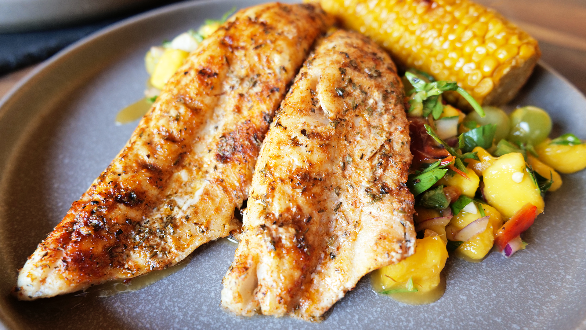 Zander vom Grill mit Mango-Salsa und Grillmais - leicht & aromatisch