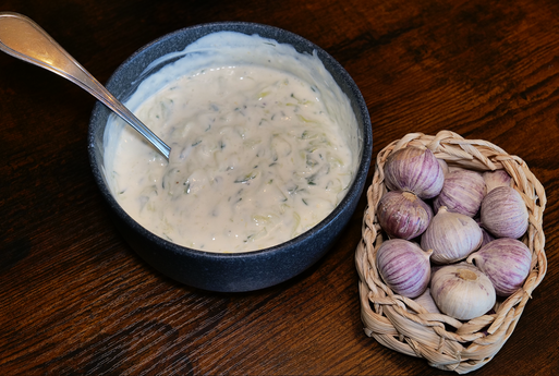 Cremiger griechischer Joghurt, verfeinert mit Minze, Knoblauch und einem Spritzer Zitrone – perfekt als Beilage, zu Gegrilltem oder als leichter Snack.