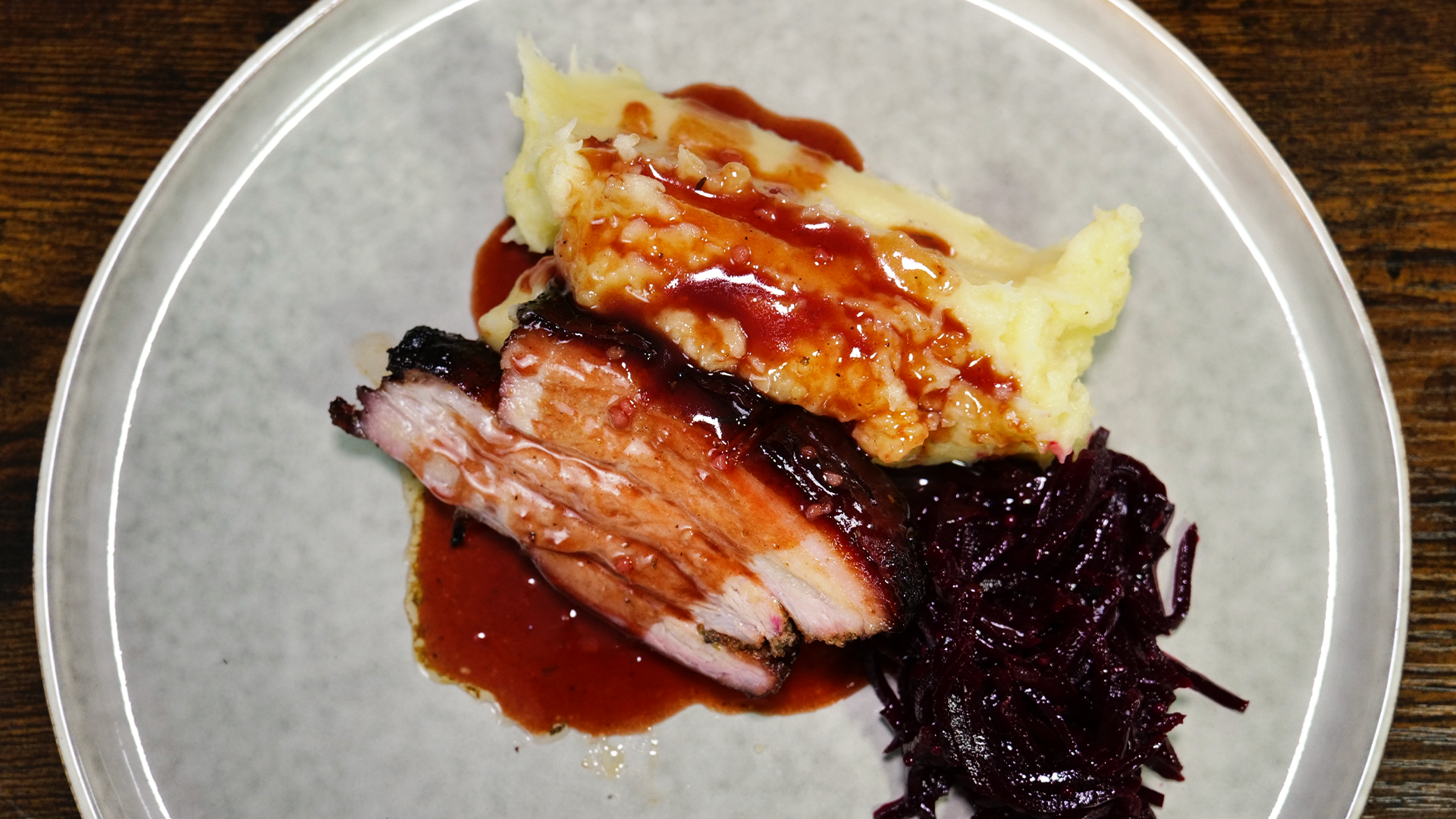 Schweinebauch mit Honig-Rum-Kirsch-Glasur vom Kamado