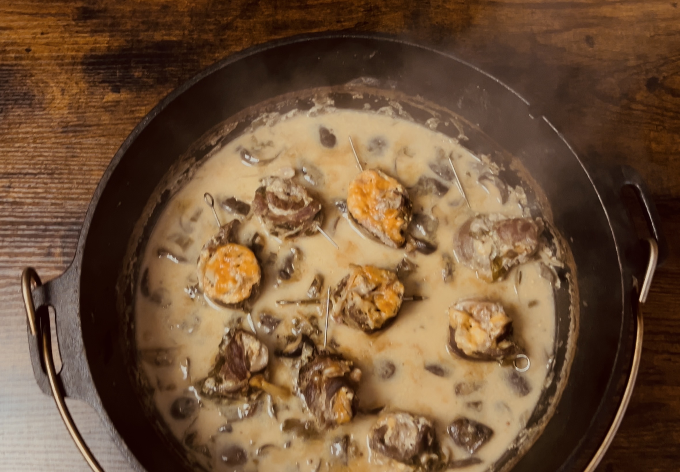 Diese Beef Rolls BBQ Style sind eine moderne, würzige Variante der klassischen Rinderroulade: gefüllt mit Bacon, Zwiebeln und Mozzarella, in cremiger Bärlauch-Pilz-Soße geschmort. Ob im Dutch Oven, auf dem Grill oder klassisch im Topf – dieses Gericht ist perfekt für alle, die ihr BBQ oder Sonntagsessen auf das nächste Level heben wollen. Zartes Fleisch trifft auf aromatische Soße, ein Rezept, das Gäste und Familie gleichermaßen begeistert.