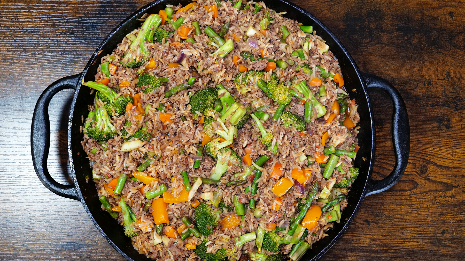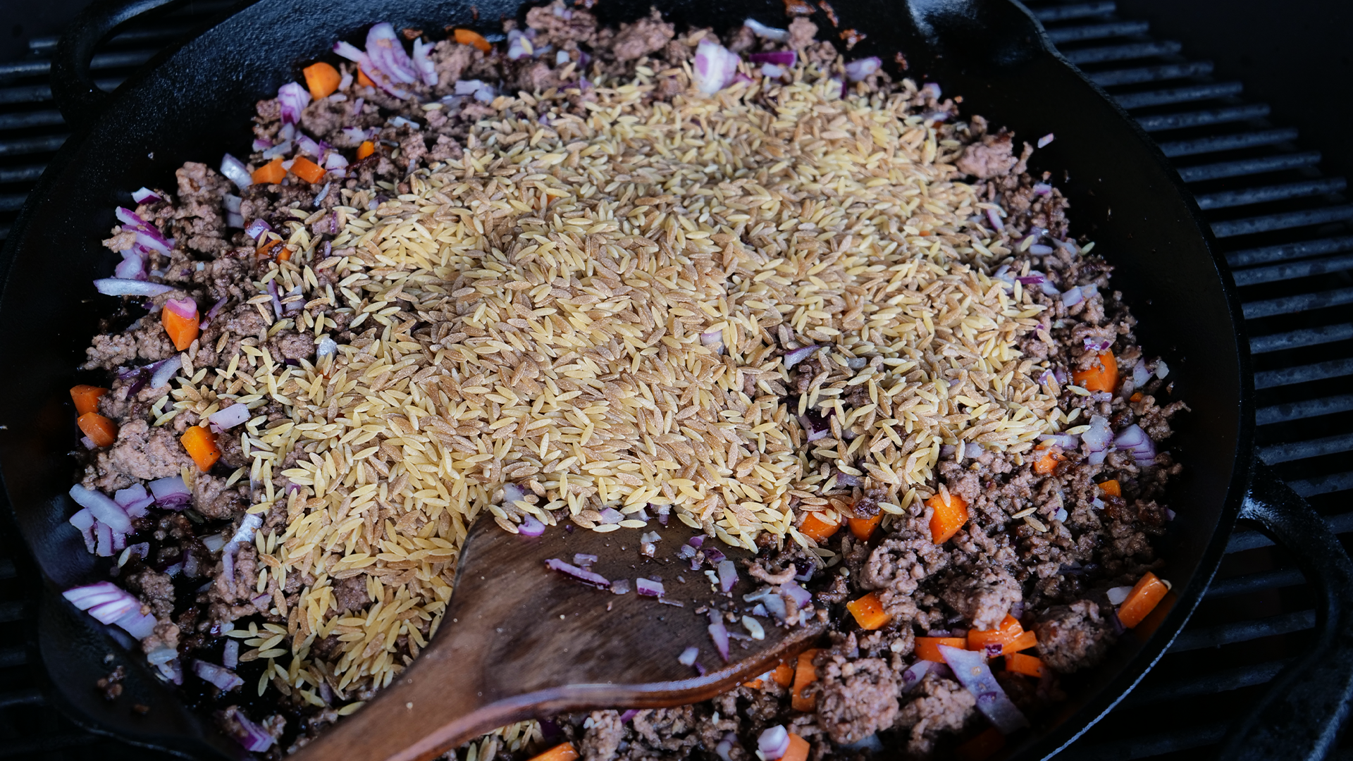 Diese griechische Hackfleisch-Gemüsepfanne mit Reisnudeln vereint saftiges Rinderhack, buntes Gemüse und aromatische Gewürze in einem unkomplizierten One-Pot-Gericht. Alles wird im Dutch Oven angebraten und gegart, sodass sich die Aromen perfekt verbinden und ein saftiges, mediterranes Familienessen entsteht. Ideal für entspannte Abende, Mealprep oder als sättigendes BBQ-Beilagengericht vom Dutch Oven.
