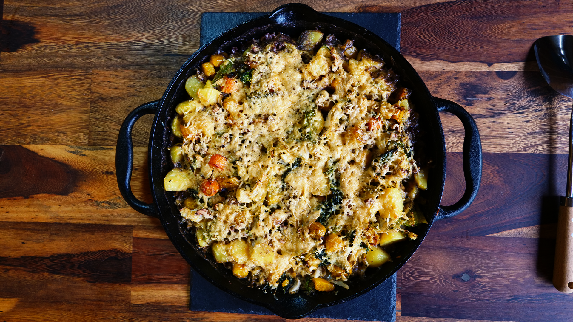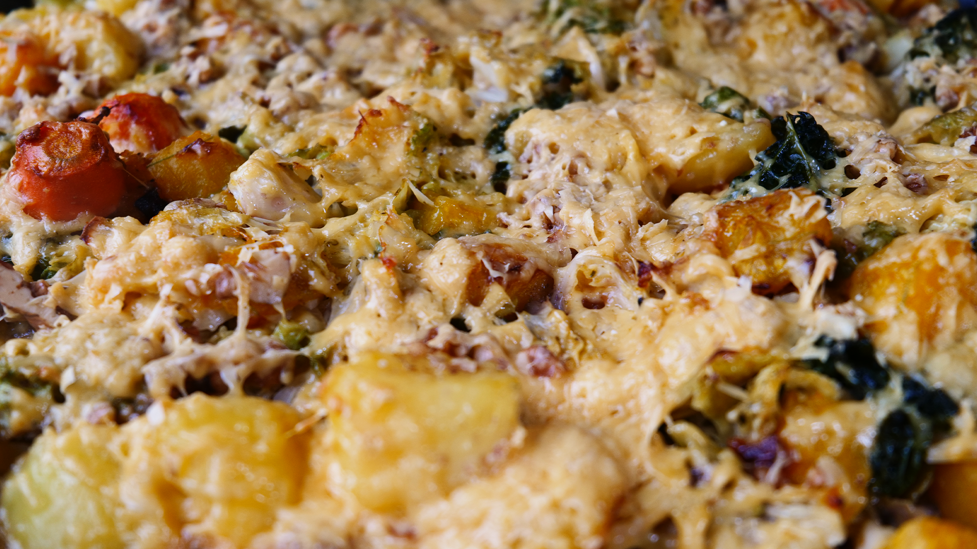 Bei 180 °C ca. 30–40 Min. überbacken, bis alles goldbraun ist.