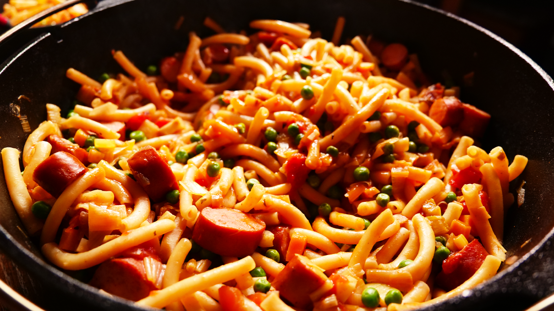 One Pot Nudeleintopf mit Cabanossi & Erbsen