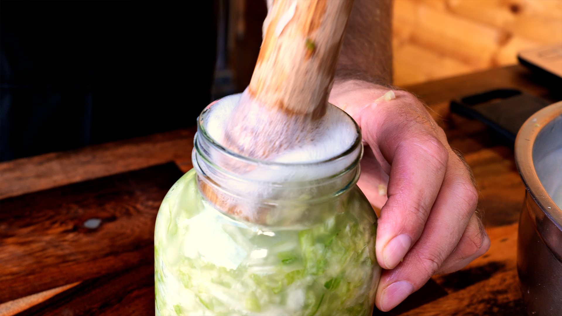 3. Alles in ein Fermentierglas füllen, fest andrücken, Flüssigkeit muss oben stehen.