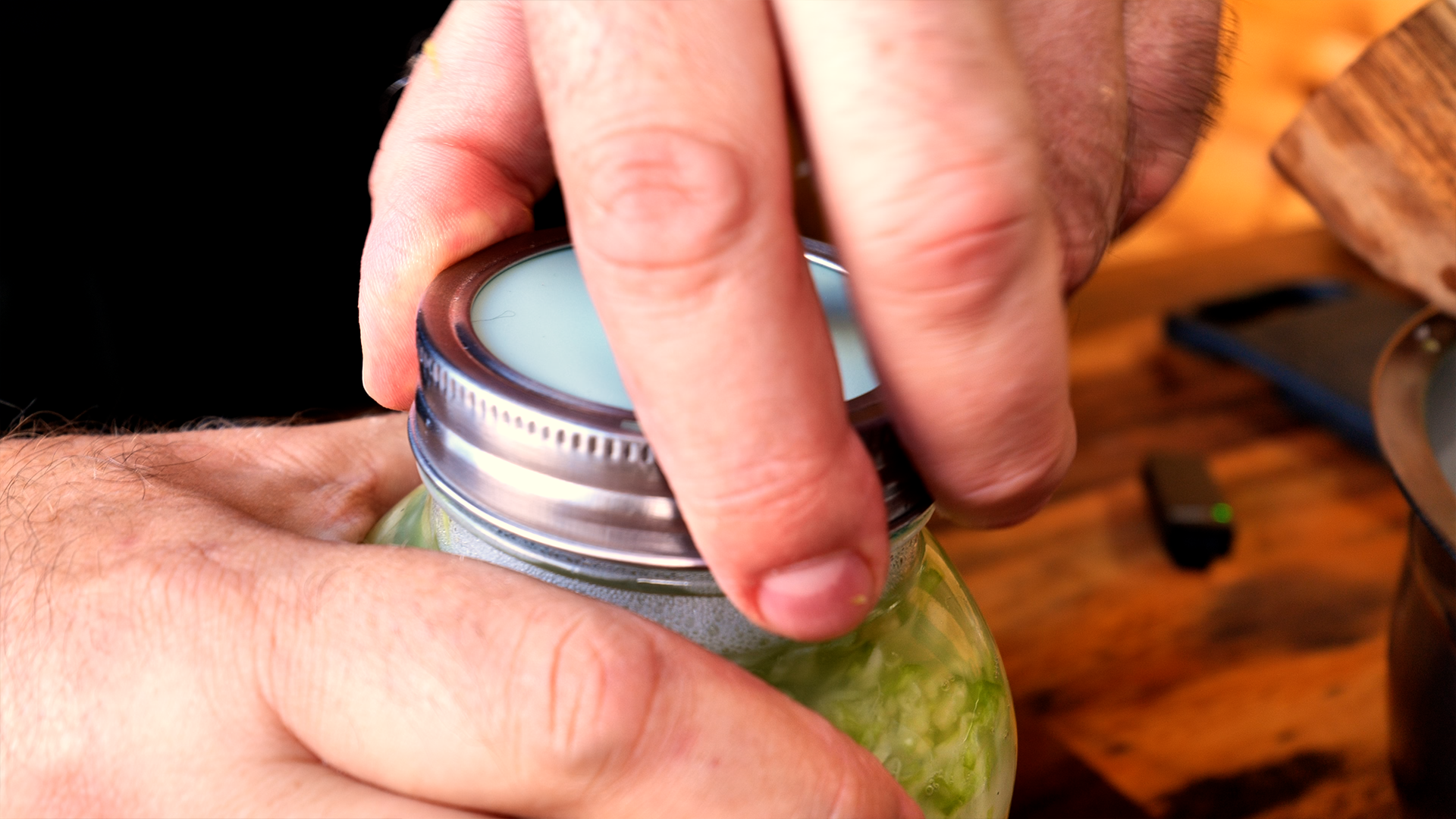 4. Gewicht drauf, Glas verschließen, mit Datum beschriften.