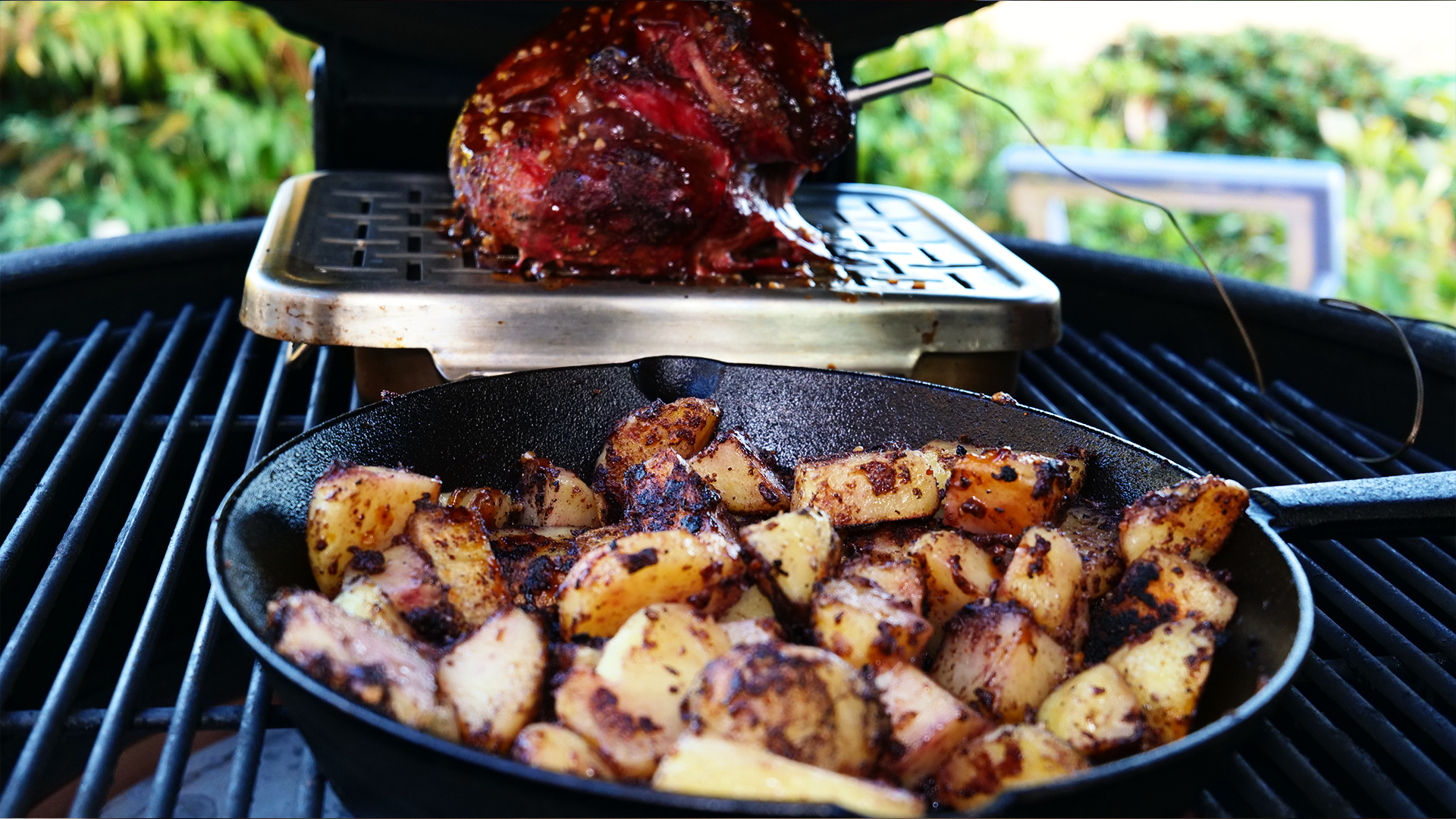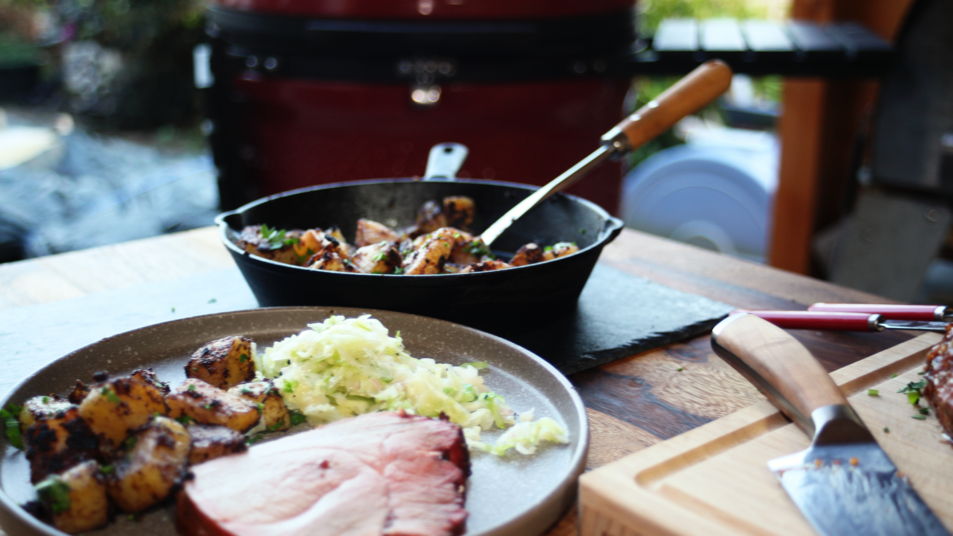 Dieses Rezept für Schweinenuss vom Kamado bringt Abwechslung auf den Grill. Das zarte Stück Schweinefleisch wird mit Gewürzen oder Schweinepuder vorbereitet, bei indirekter Hitze sanft gegart und mit einer süß-würzigen Glasur aus Gingerbrew, Honig und Senf veredelt. Das Ergebnis: ein saftiger Braten mit aromatischer Kruste, der durch leichtes Raucharoma perfekt abgerundet wird. Mit Beilagen wie Drillingen, Krautsalat oder frischem Brot wird daraus ein vollwertiges BBQ-Gericht für jede Gelegenheit.