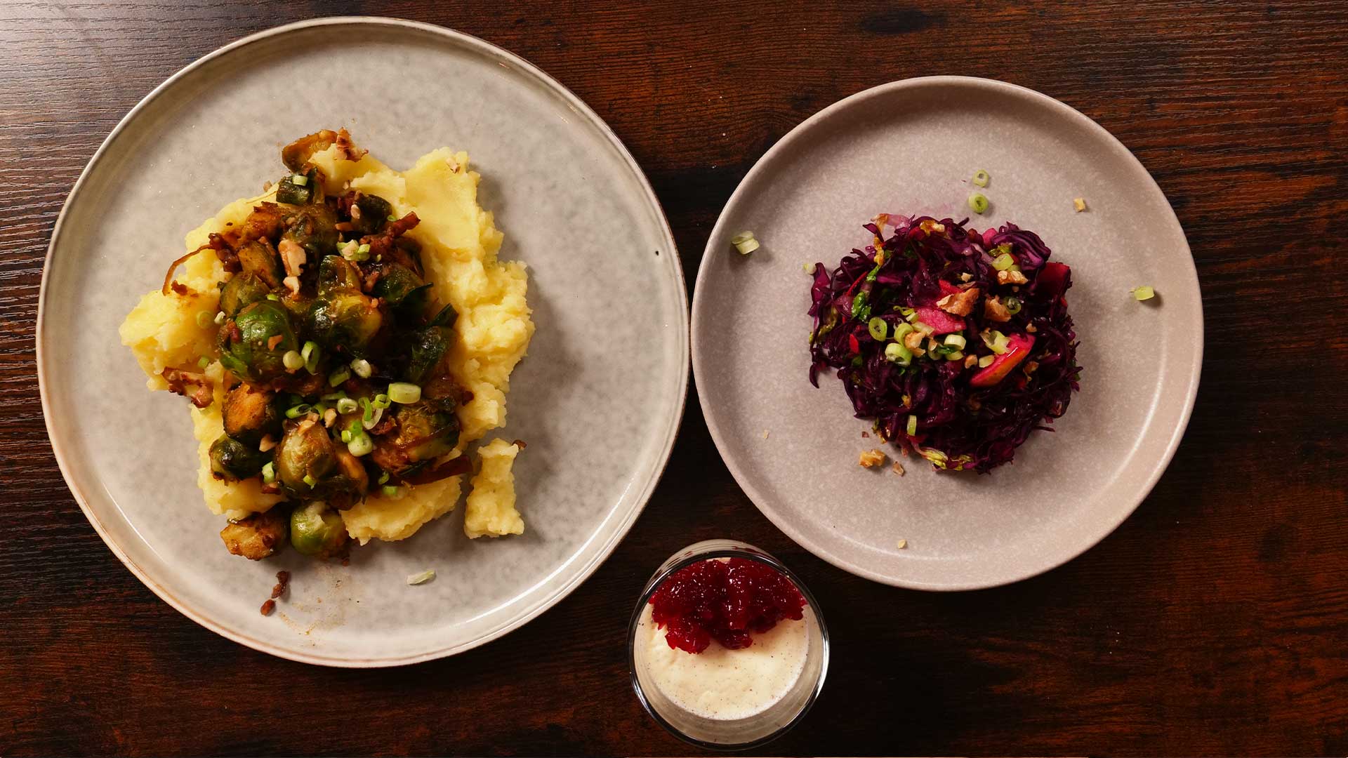 Hauptgang: Smokey Rosenkohl Crunch mit Kartoffelpüree