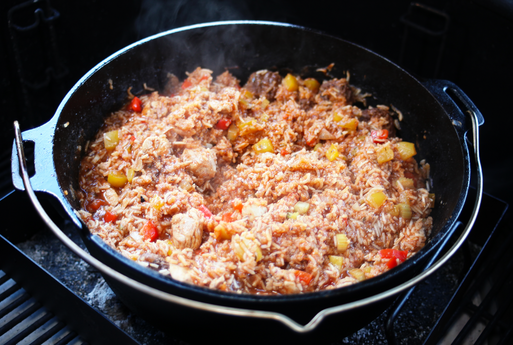 Deftig, würzig & sättigend – Jörchels Jambalaya mit Blitz-Sucuk aus dem Dutch Oven ist echtes Soulfood.