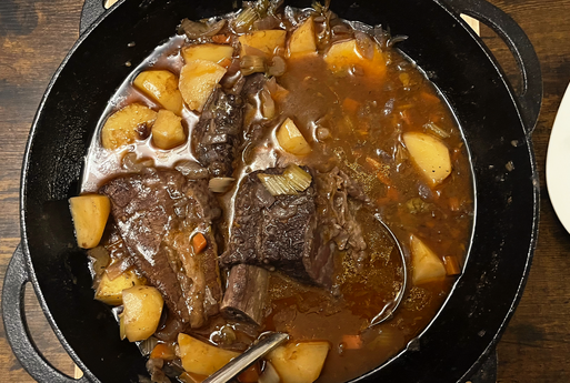Zarte Shortribs mit Gemüse und Kartoffeln – langsam im Dutch Oven geschmort für kräftige Röstaromen und viel Geschmack.