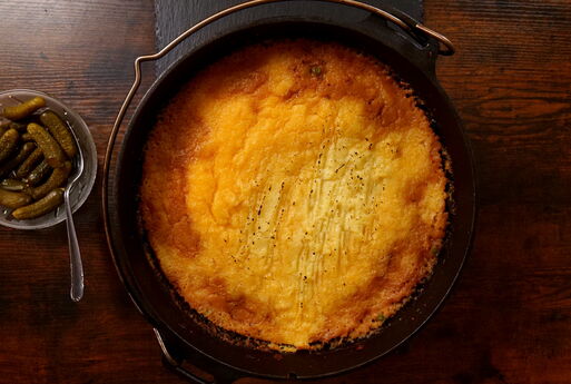 Kräftiges Hack, cremiges Kartoffel-Topping und goldene Kruste: Cottage Pie aus dem Dutch Oven – ein rustikaler Klassiker, perfekt für draußen am Feuer.