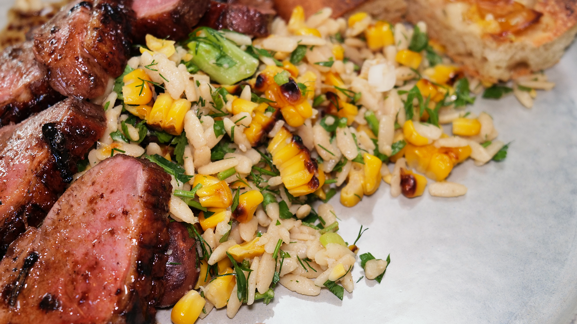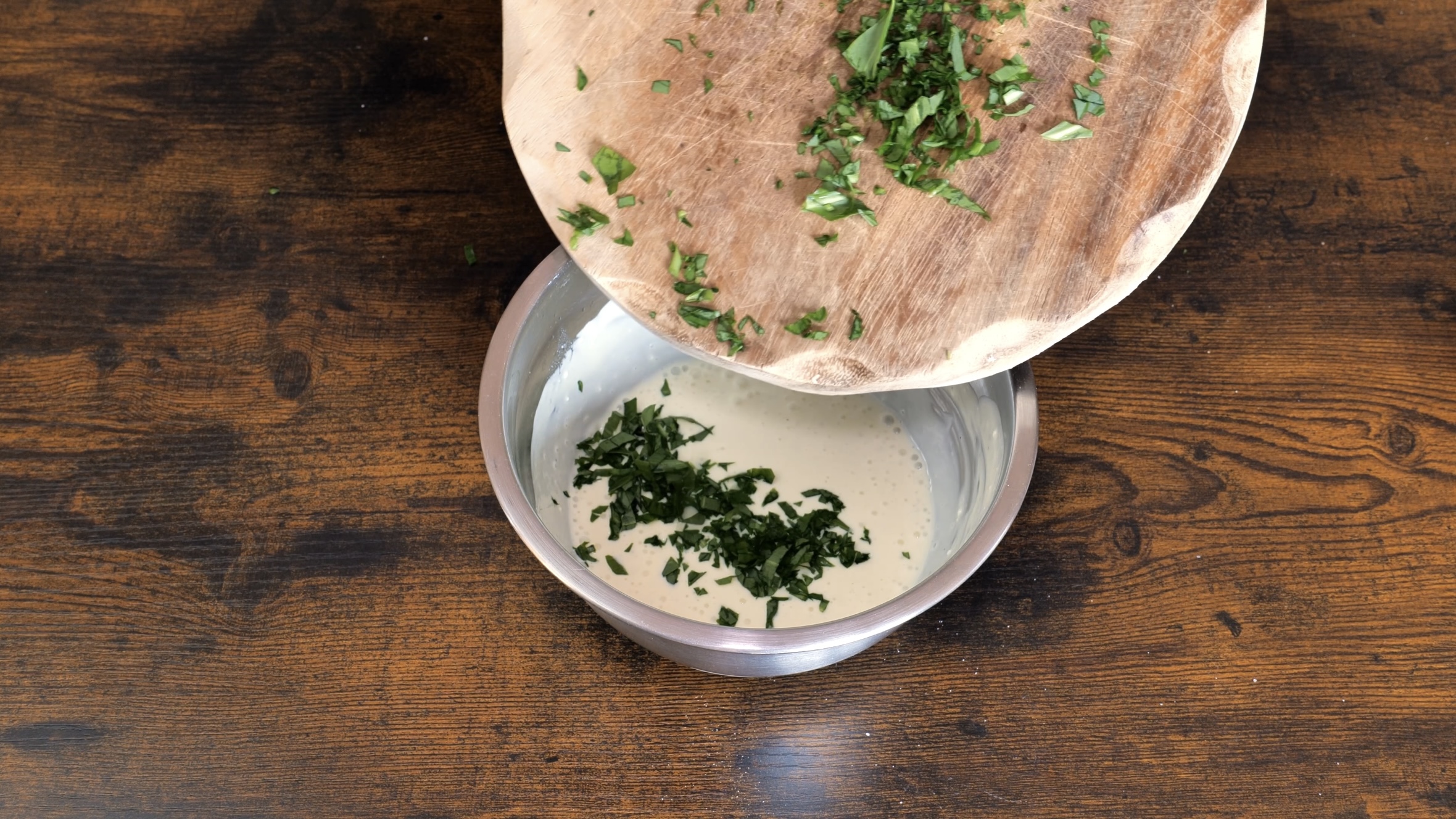 Für extra Aroma und Frische bereite ich ein einfaches Brühstück aus Emmer-Vollkornmehl und kochendem Wasser vor. Kurz angesetzt, sorgt es später im Teig für eine wunderbar saftige Krume und feinen Geschmack.